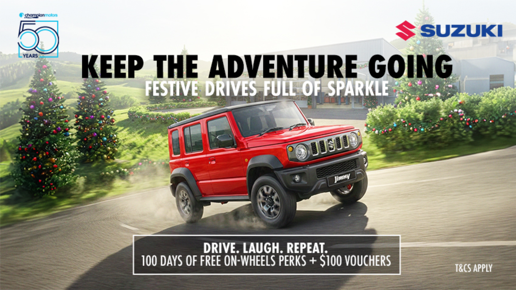 Service your Suzuki this festive season and unlock100 days of on-wheels perks and $100 worth of vouchers for complete cleanse service with a minimum spend of $888 at our service centres. On-wheels exclusives include 24-hour roadside assistance, towing, Nano Detox treatment, 10% discount for battery replacement and more.